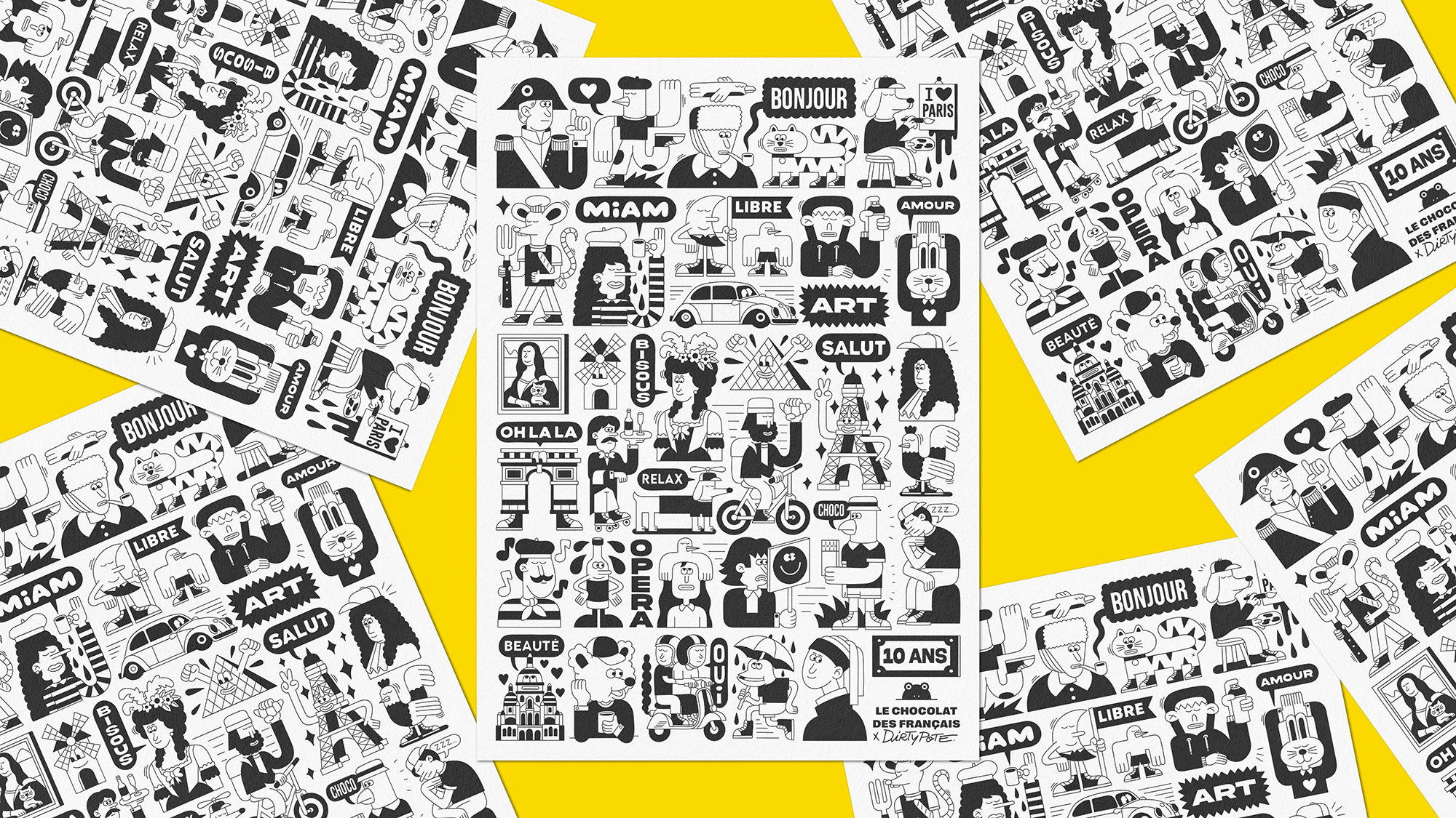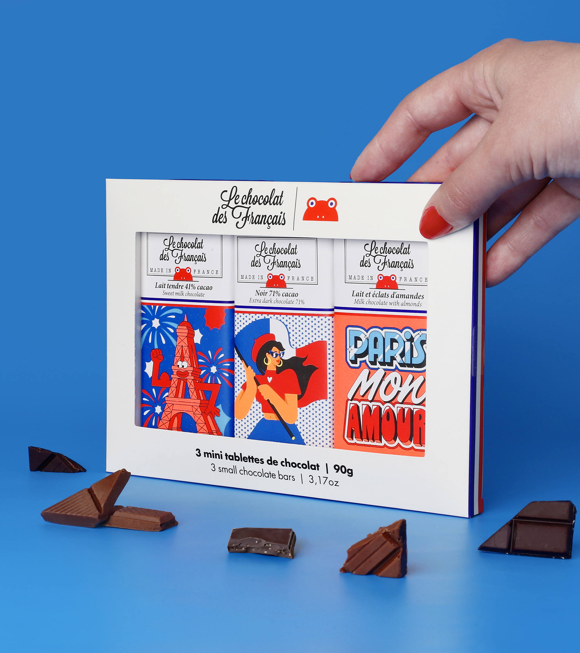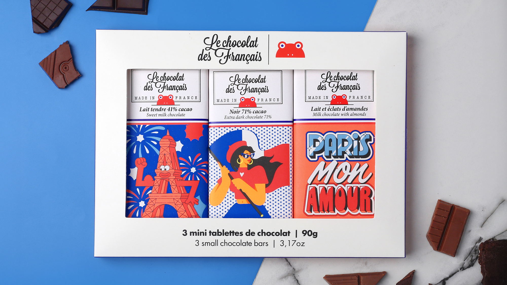 I’ve had the chance to collaborate several times with Le Chocolat des Français, a brand that combines chocolate and illustration by inviting artists to design its products. Through our various collaborations, I’ve explored different themes tied to key moments such as Christmas, Easter, and exclusive limited editions.